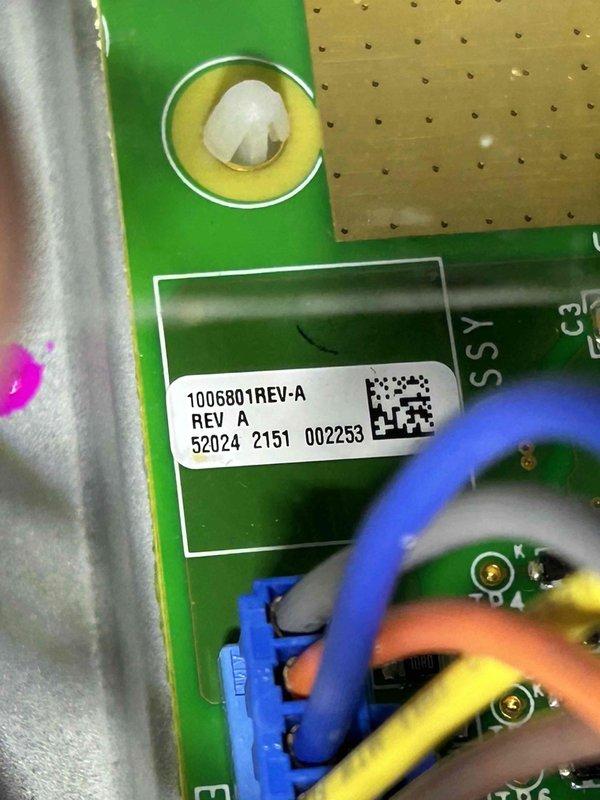 Inspection revealed an issue with the control board requiring attention. Removed access panel to examine the circuit board assembly, which displayed part number 1006801REV-A. Documented the control board condition with photographs showing the PCB with multiple wire connections including blue, orange, yellow, and brown/black conductors properly terminated to the board. The circuit board appeared to be the source of the heating malfunction based on system behavior and diagnostic findings.