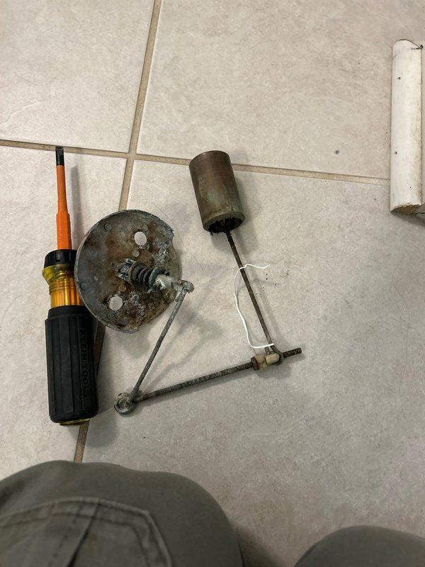 Replaced worn bathtub drain stopper lever assembly due to failed linkage mechanism. Removed corroded original assembly including trip lever, linkage rod, and spring components, then installed new lever assembly to restore proper stopper operation.