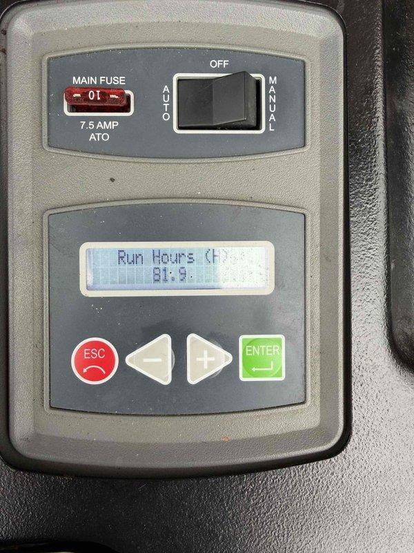 Performed routine maintenance service on Generac generator. Inspected control panel functionality, verified run hours at 81.9, and confirmed main fuse (7.5 AMP ATO) was intact. Set control switch to proper position after service completion.