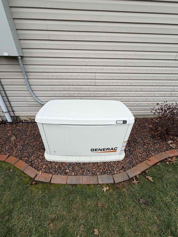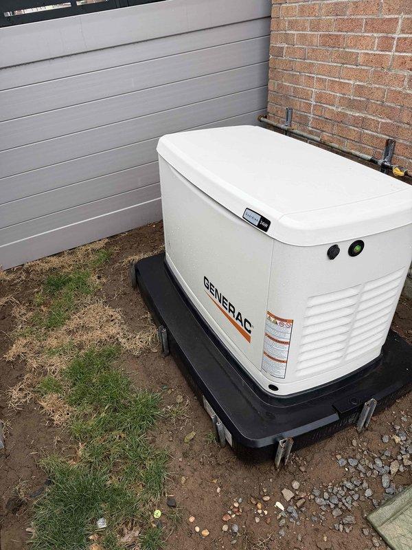 Completed installation of a 24KW generator system with 16-circuit automatic transfer switch. Work included excavation for proper placement of the generator unit adjacent to the building structure, installation of required gas piping along the exterior wall, and connection to the home's electrical system. All connections were properly secured and tested to ensure full functionality during power outages.