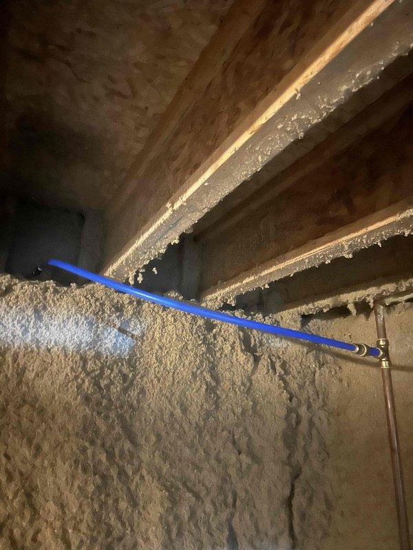 Replaced exterior hose bibb, installing new unit with main shutoff valve. Accessed plumbing through crawlspace to complete connection to existing blue PEX supply line. Installation matches previous year's replacement for consistent functionality.