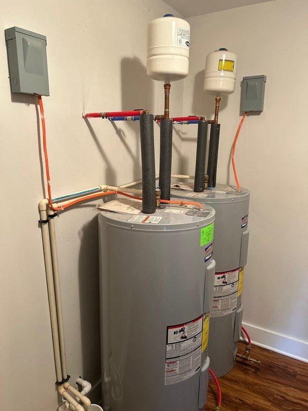 Conducted comprehensive site evaluation for potential conversion from existing electric water heater system to propane tankless water heater. Assessment included inspection of dual electric water heater setup with expansion tanks and existing plumbing infrastructure. Quote preparation encompasses propane line installation for requested tankless water heater, propane cooktop conversion, and additional stub-out for future generator connection, along with bathroom renovation to add shower/tub to existing half-bath.